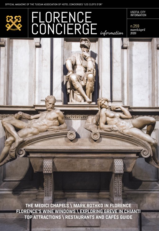 Florence Concierge é un magazine che da più di 40 anni offre i migliori consigli per vivere un soggiorno a Firenze a 360 gradi, dallo shopping alla ristorazione, passando per speciali itinerari e per il meglio delle programmazioni di teatri e musei e degli altri eventi in città. Realizzato attraverso la professionalità e la lunga esperienza dei concierge Chiavi d'Oro della Toscana, Florence Concierge contiene tutte le informazioni utili per chi visita la città, pensato per un lettore attento che non vuol perdersi niente di Firenze, cogliendo l'opportunità di farsi guidare da chi ha fatto di ciò un mestiere, diventando i primi ambasciatori di questo magnifico territorio. Pubblicato in lingua inglese, in un formato pocket perfetto per chi é in viaggio.