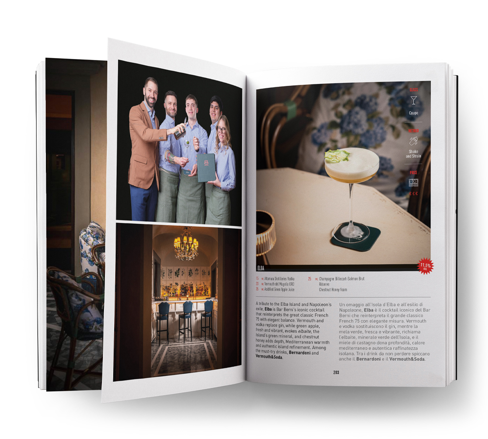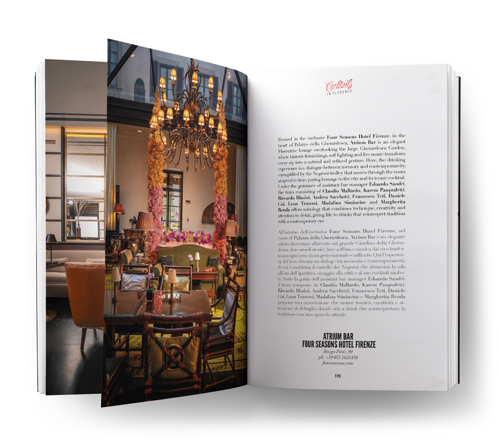 Con formato 16x23 cm e copertina rigida, il libro si presenta come un prodotto editoriale curato e contemporaneo, pensato per raccontare l’eccellenza della mixology fiorentina con uno sguardo internazionale.
