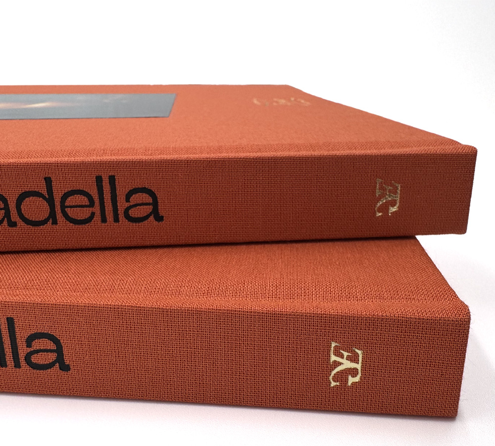 Copertina cartonata, con rivestimento in tela e stampa a caldo