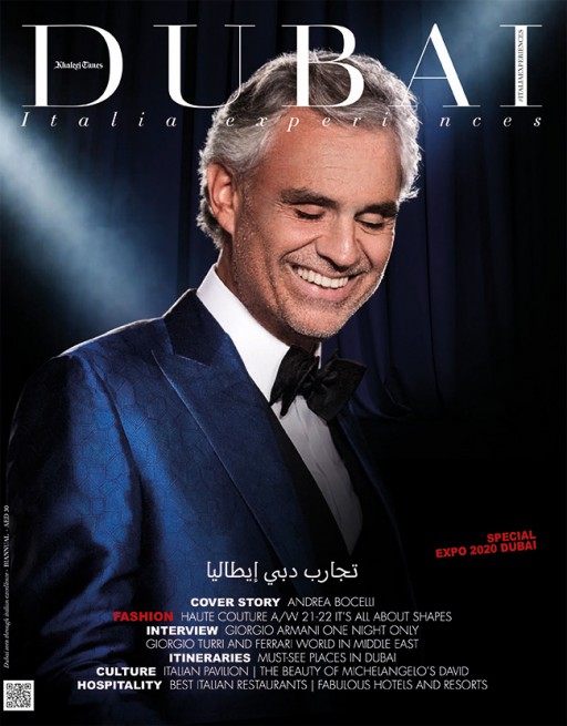 Dubai Italia Experiences è il magazine dedicato alla scoperta di una città cosmopolita, oggi una delle capitali mondiali del lusso, dove i valori del top di gamma sono rappresentati dal lifestyle italiano e dal fascino del più autentico made in Italy. Vi guidiamo in una Dubai dove il dialogo con l'Italia è un amore in continua evoluzione, dell'Italia qui si ama la cultura dell'ospitalità, la moda, il design, le automobili, il cibo, l'arte, lo stile e il saper vivere bene.