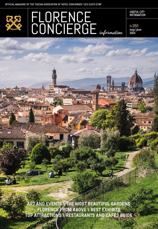 Florence Concierge é un magazine che da più di 40 anni offre i migliori consigli per vivere un soggiorno a Firenze a 360 gradi, dallo shopping alla ristorazione, passando per speciali itinerari e per il meglio delle programmazioni di teatri e musei e degli altri eventi in città. Realizzato attraverso la professionalità e la lunga esperienza dei concierge Chiavi d'Oro della Toscana, Florence Concierge contiene tutte le informazioni utili per chi visita la città, pensato per un lettore attento che non vuol perdersi niente di Firenze, cogliendo l'opportunità di farsi guidare da chi ha fatto di ciò un mestiere, diventando i primi ambasciatori di questo magnifico territorio. Pubblicato in lingua inglese, in un formato pocket perfetto per chi é in viaggio.