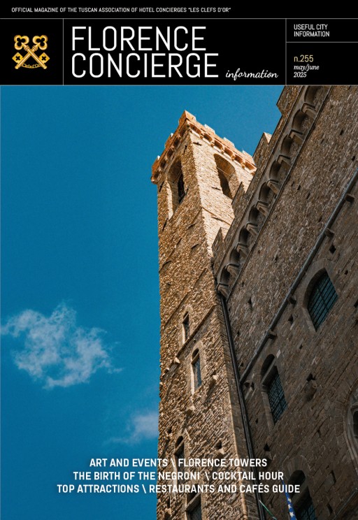 Florence Concierge é un magazine che da più di 40 anni offre i migliori consigli per vivere un soggiorno a Firenze a 360 gradi, dallo shopping alla ristorazione, passando per speciali itinerari e per il meglio delle programmazioni di teatri e musei e degli altri eventi in città. Realizzato attraverso la professionalità e la lunga esperienza dei concierge Chiavi d'Oro della Toscana, Florence Concierge contiene tutte le informazioni utili per chi visita la città, pensato per un lettore attento che non vuol perdersi niente di Firenze, cogliendo l'opportunità di farsi guidare da chi ha fatto di ciò un mestiere, diventando i primi ambasciatori di questo magnifico territorio. Pubblicato in lingua inglese, in un formato pocket perfetto per chi é in viaggio.