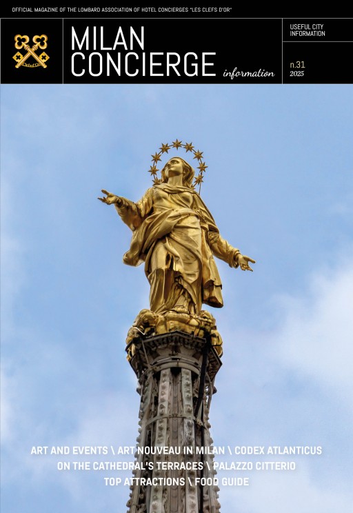 Milan Concierge é un magazine che offre i migliori consigli per vivere un soggiorno a Milano a 360 gradi, dallo shopping alla ristorazione, passando per speciali itinerari e per il meglio delle programmazioni di teatri e musei e degli altri eventi in città. Realizzato attraverso la professionalità e la lunga esperienza dei concierge Chiavi d'Oro della Lombardia, Milan Concierge contiene tutte le informazioni utili per chi visita la città, pensato per un lettore attento che non vuol perdersi niente di Milano, cogliendo l'opportunità di farsi guidare da chi ha fatto di ciò un mestiere, diventando i primi ambasciatori di questo magnifico territorio. Pubblicato in lingua inglese, in un formato pocket perfetto per chi é in viaggio.