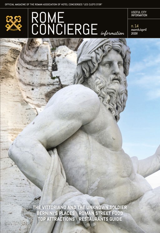 Rome Concierge é un magazine che offre i migliori consigli per vivere un soggiorno a Roma a 360 gradi, dallo shopping alla ristorazione, passando per speciali itinerari e per il meglio delle programmazioni di teatri e musei e degli altri eventi in città. Realizzato attraverso la professionalità e la lunga esperienza dei concierge Chiavi d'Oro di Roma, Rome Concierge contiene tutte le informazioni utili per chi visita la città, pensato per un lettore attento che non vuol perdersi niente di Roma, cogliendo l'opportunità di farsi guidare da chi ha fatto di ciò un mestiere, diventando i primi ambasciatori di questa magnifica città e il suo territorio. Pubblicato in lingua inglese, in un formato pocket perfetto per chi é in viaggio.